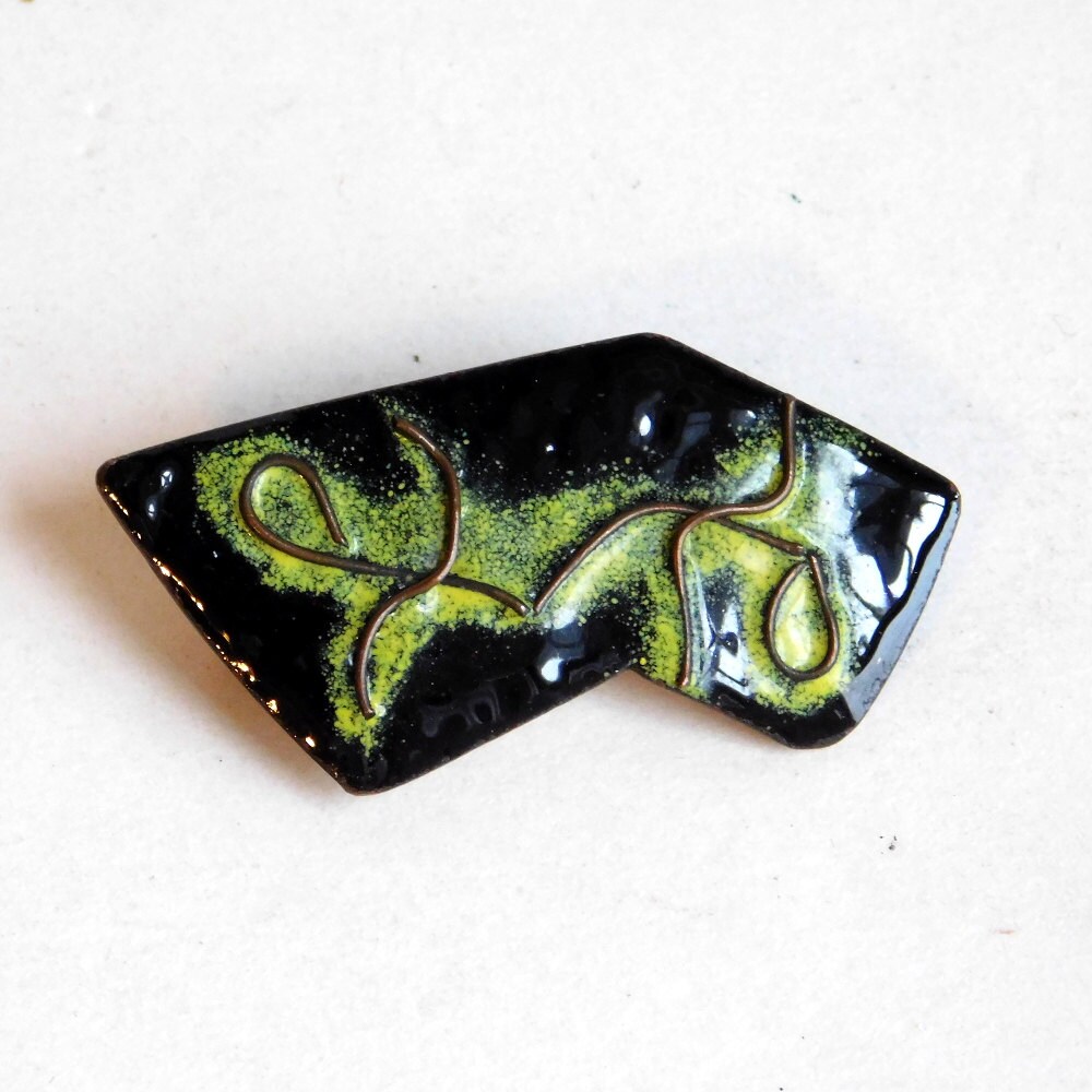 Vintage Mid Century Modern Enamel On Copper Brooch Black Etsy Ireland